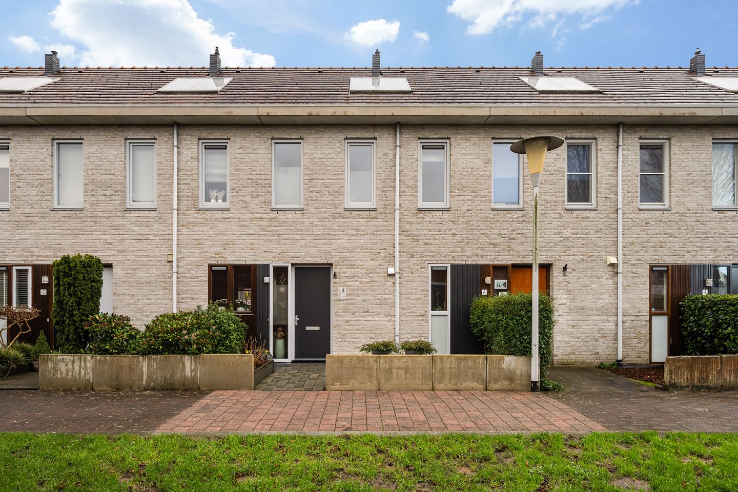 Er is een voortuin, met groen voor de deur. Aan de voorzijde grenst deze woning aan de groenvoorzieningen. De achtertuin is netjes aangelegd met een terras en borders vol groen. Achter in de tuin is een vlonderterras om lekker te zonnen, een schuur voor de tuinspullen en de fietsen en er is een achterom.
