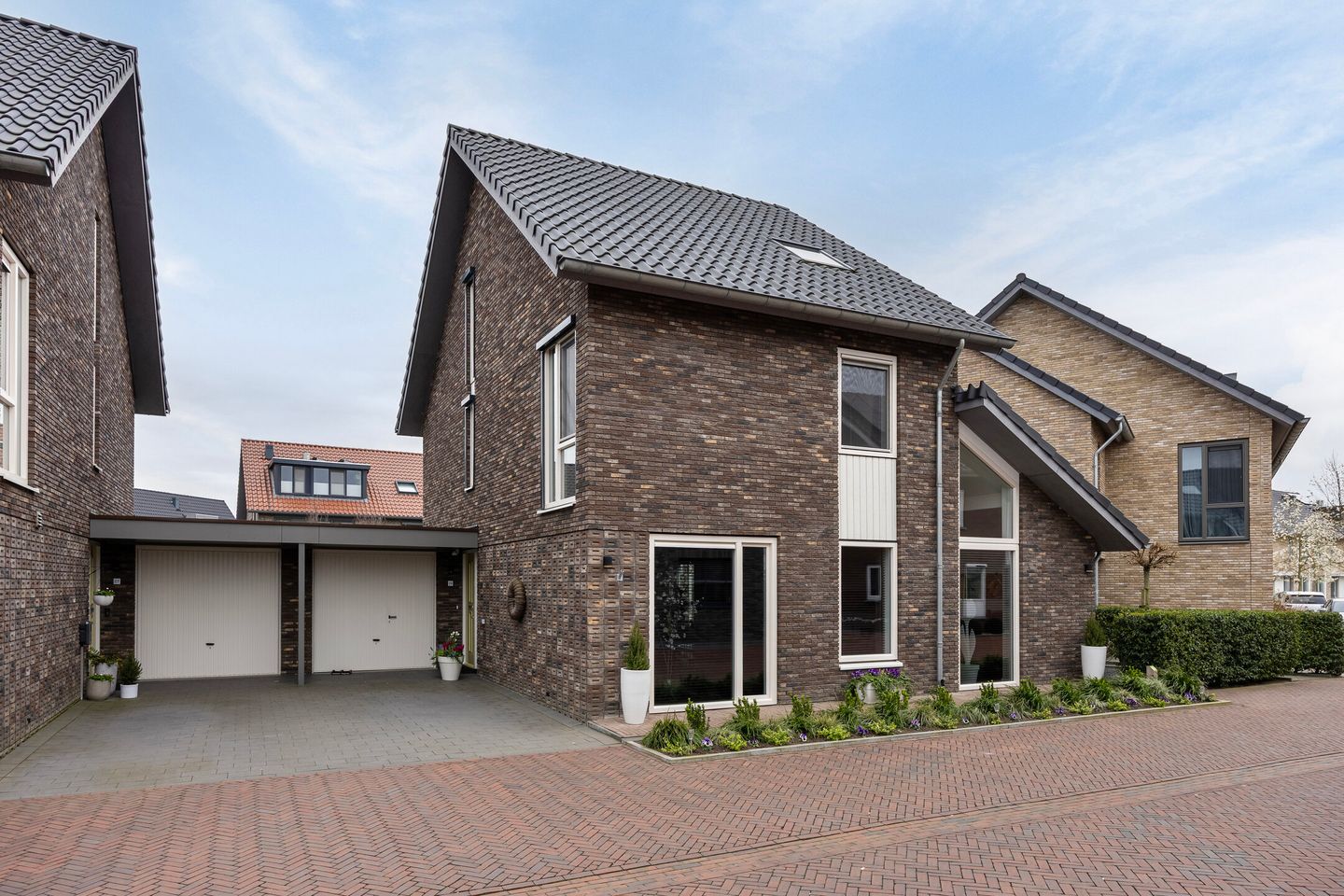 Binnen word je direct verrast door de hoogwaardige afwerking en de warme, eigentijdse sfeer. De royale woonkamer met eethoek en sfeervolle gashaard vormt het hart van het huis. De moderne luxe keuken met kookeiland met bar en kastenwand biedt volop werk- en kastruimte en is van alle gemakken voorzien. Mede door de bijkeuken met kastenwand is er volop ruimte voor voorraad.