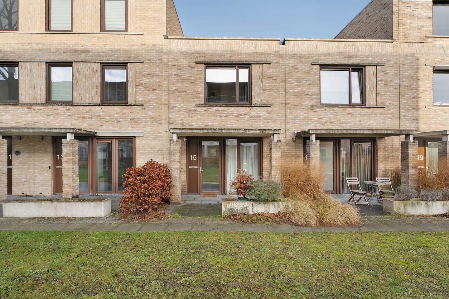 De achtertuin is onderhoudsarm en ligt op het noorden, maar door de slimme indeling is er genoeg zon en schaduw. Het terras is een fijne plek om te zitten of buiten te eten. In de houten schuur kun je spullen zoals fietsen kwijt. De woning heeft een eigen parkeerplek, en achter de tuin ligt een gezamenlijk parkeerterrein voor de buurtbewoners. Aan de voorzijde van de woning vind je een deels overdekt terras, ideaal voor zonnige dagen, met een fijne zonligging op het zuiden.