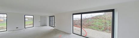 Entree met meterkast, mooie hal met trapopgang en een modern toilet met fonteintje. Je komt binnen in de heerlijk ruime leefruimte, een grote lichte doorzonkamer met veel ramen en een royale open keuken. Keuzes voor wat betreft de keuken kunnen nog (deels) gemaakt worden. Het installatiewerk is gedaan, waardoor er nu ruimte is voor een kook- en spoeleiland en hoge kasten met apparatuur (overleg met keukenleverancier mogelijk). Er zijn vanuit de keuken openslaande deuren naar de tuin en aan de zijkant vanuit de woonkamer een schuifpui naar buiten. Vanuit de keuken loop je zo door naar de praktische technische ruimte met o.a. de aansluitingen voor de wasapparatuur ofwel bijkeuken en daarachter een berging. Begin januari worden er op de begane grond prachtige zwarte binnendeuren geplaatst.
