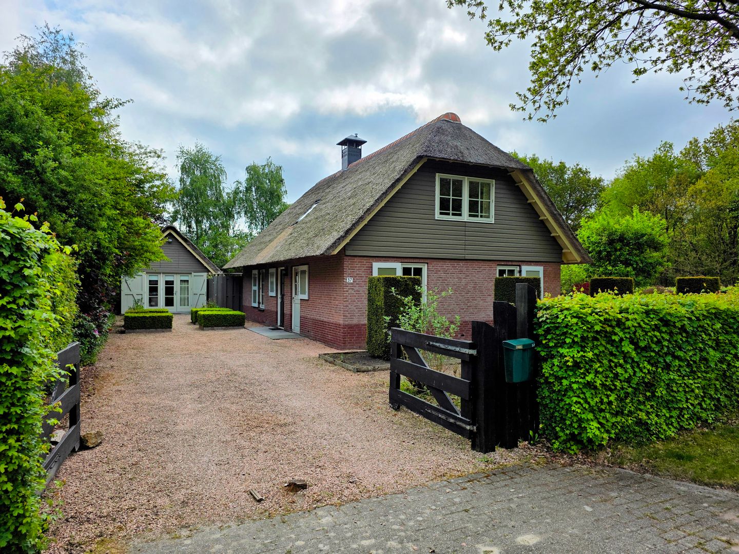 In deze bijzonder aantrekkelijk uitgevoerde vakantiewoning met gastenverblijf op Buitenplaats de Hildenberg in Appelscha kan het! Deze mooi gelegen, riet gedekte, VRIJSTAANDE, VAKANTIEVILLA (bouwjaar 2005) met vrijstaand bijgebouw welke is voorzien van zelfstandig gastenverblijf (slaap- en badkamer) en aangrenzende berging met bergzolder. Op eigen terrein is er voldoende parkeergelegenheid. Rondom de recreatiewoning ligt een ruime, smaakvol aangelegde tuin met een heerlijke bezonning. Het geheel ligt op een perceel van maar liefst ca. 898 m².