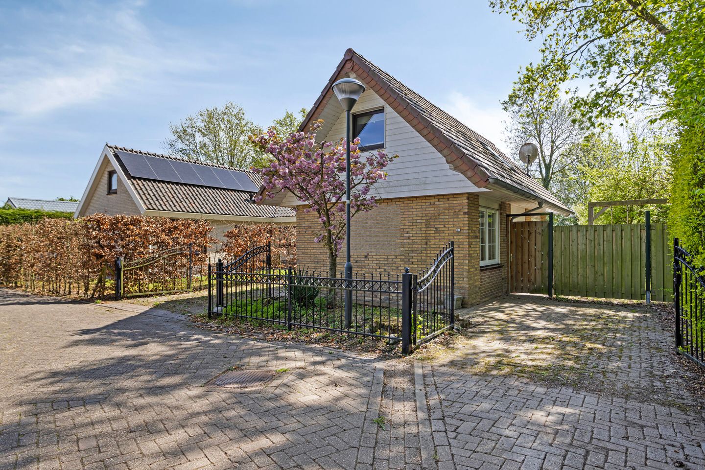 Dieses freistehende Haus hat eine Wohnfläche von 60 m² und das Energielabel E. Das Haus ist von einem großen, grünen Garten umgeben, der für viel Privatsphäre sorgt. An der Seite des Hauses befindet sich ein praktischer Carport mit Abstellraum. Innen ist das Haus modern eingerichtet und verfügt über zwei Schlafzimmer.