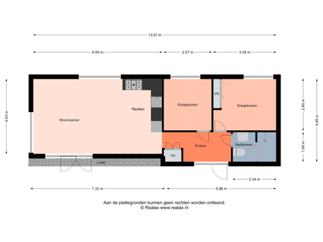 3 kamers (2 slaapkamers)
