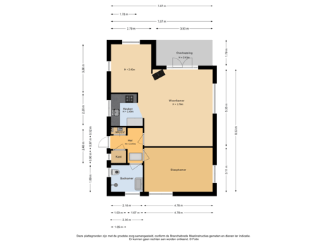 Bij binnenkomst vanaf de oprit wordt u verwelkomd in een lichte hal. Vanuit deze hal heeft u toegang tot de verschillende ruimtes van de recreatiewoning. Zowel de woonkamer als de slaapkamer en de badkamer zijn direct vanuit de hal bereikbaar, wat zorgt voor een praktische en overzichtelijke indeling.