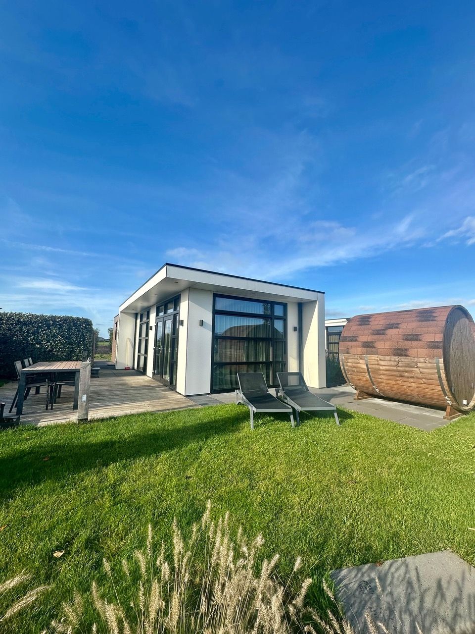 - Bijzonderheden: jacuzzi, sauna, airco, zonnepanelen en ligging aan het water.