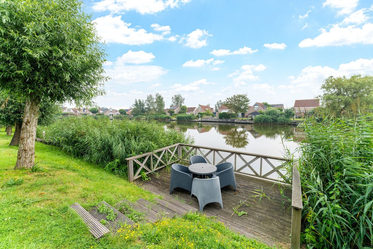 Geniet van serene watergeluiden en een prachtig uitzicht, direct vanuit je tuin. Een stijlvolle vlonder steekt uit over het water – perfect voor ontspannen momenten of gezellige avonden met vrienden en familie. Daarnaast is er een tweede terras op het oosten, ideaal voor de ochtendzon. De vrijstaande berging biedt volop ruimte voor fietsen, tuinkussens of strandspullen.