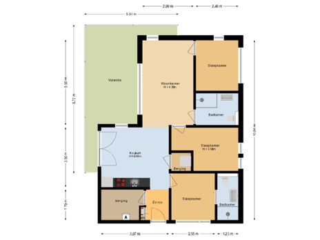 De bungalow beschikt over drie slaapkamers, elk ruim en licht. De grootste slaapkamer heeft een en-suite badkamer, waardoor je volop privacy en comfort hebt. De twee badkamers zijn modern ingericht en voorzien van een inloopdouche, wastafel en toilet. De indeling van de woning is perfect voor zowel gezinnen als voor wie op zoek is naar ruimte en rust.