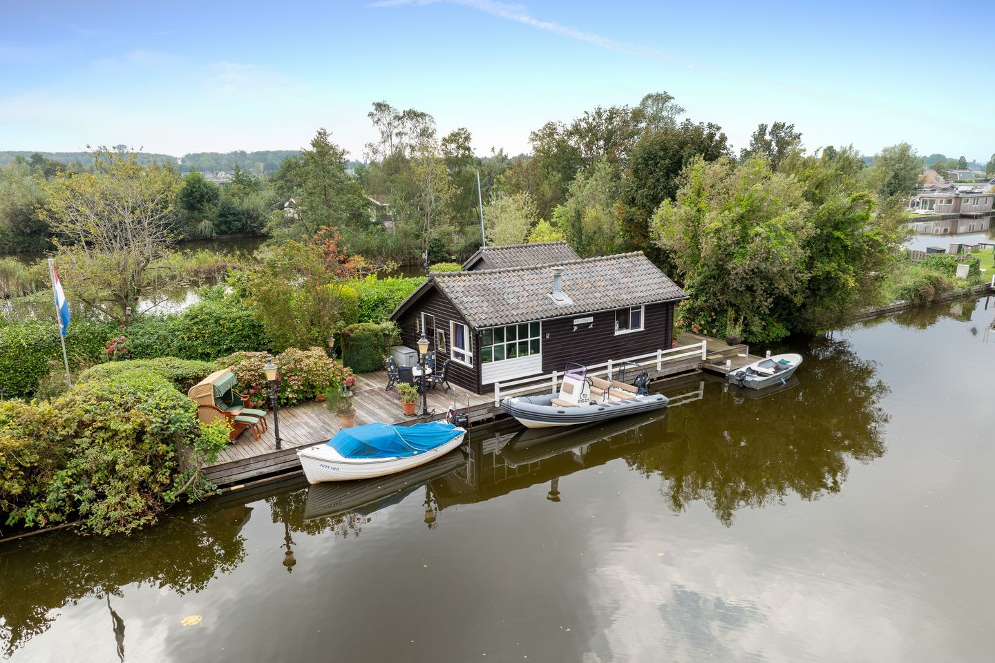 • De inboedel van de recreatiewoning, evenals de boten, zijn inbegrepen in de koopsom; één van de boten beschikt over een nieuwe motor.