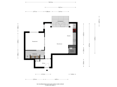 - 7 m² (2,10 meter diep en 3,45 meter breed)