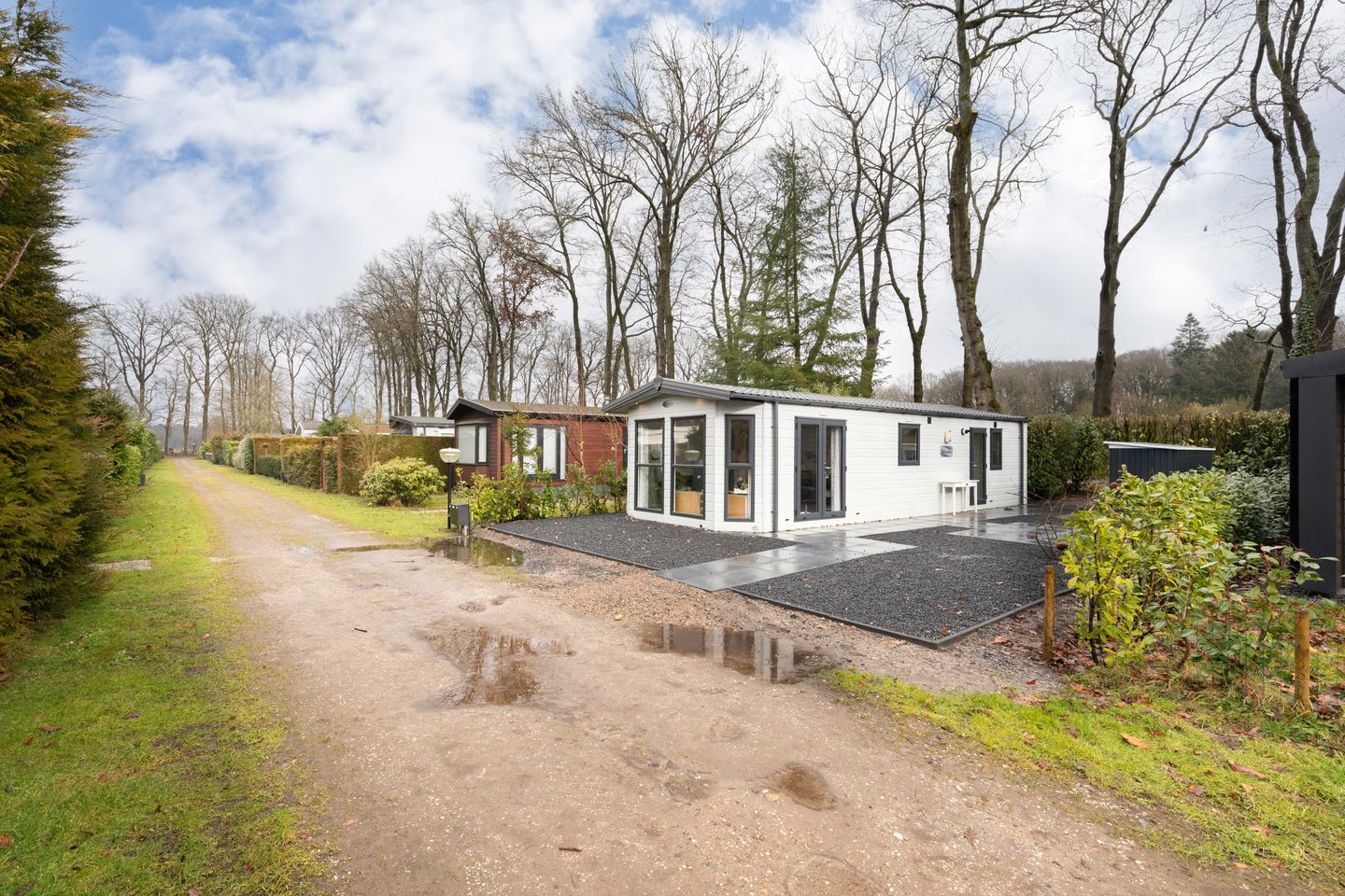 Daarnaast beschikt het chalet over een externe berging en een eigen parkeerplaats op het perceel – extra gemak dat het geheel compleet maakt.