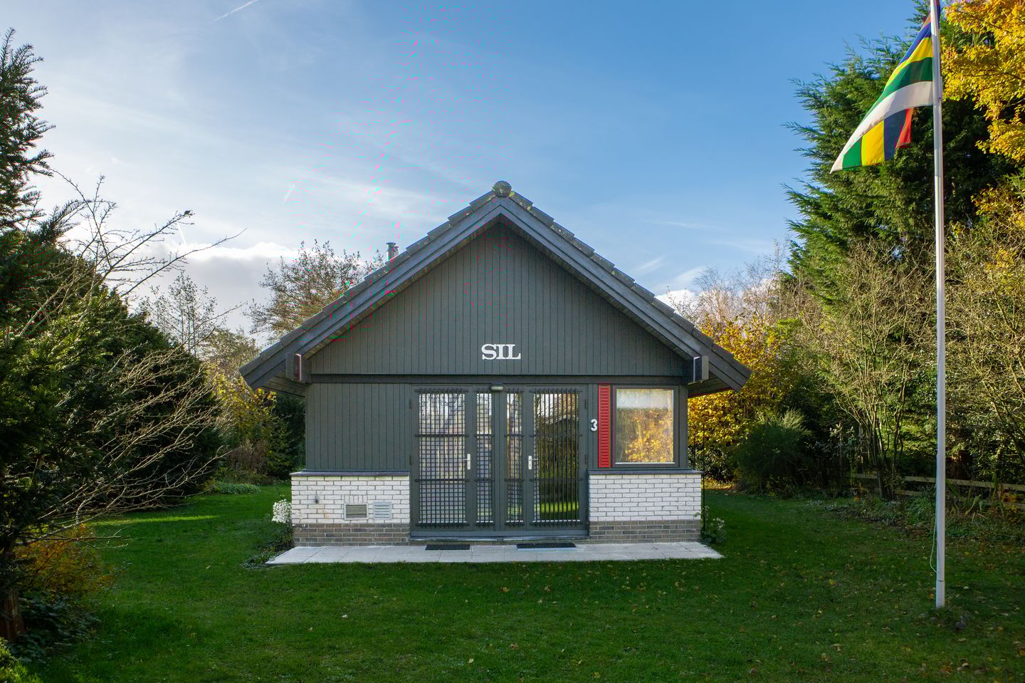Dicht bij bos, duin en strand, staat deze prachtige vrijstaande recreatiebungalow genaamd "Sil" op een perceel van 850 m² EIGEN GROND!