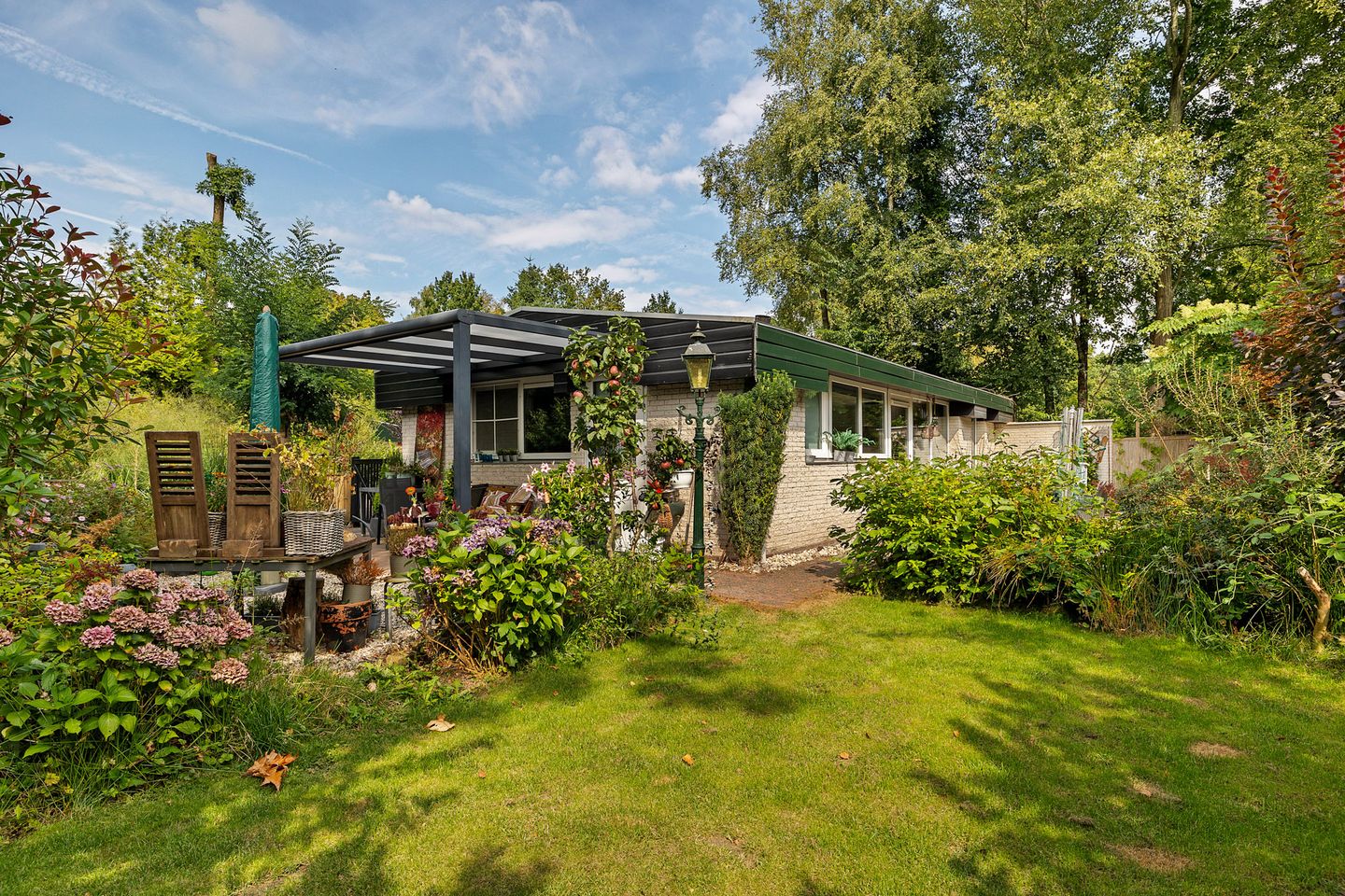 Ook deze in 2001 uitgebouwde en vanaf 2011 gemoderniseerde bungalow staat op een fraaie kavel van 590 m². De omsloten tuin ligt op het zuidwesten en heeft een prima bezonning, je kan genieten van de eerste zonnestralen in de ochtend tot zonsondergang. Een unieke locatie om even aan de drukte van alle dag te ontsnappen, onthaasten is hier het motto. Het park bevat ca. 100 bungalows en grenst aan het uitgestrekte natuurgebied Boswachterij Gees. In deze prachtige omgeving kan je heerlijke wandelen maar ook bijv. mountainbiken en vervolgens iets verfrissends te nuttigen in het op het park gelegen kleinschalig restaurant.