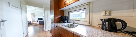 Entree, living met vanuit de woonkamer uitzicht op het voorgelegen water. Tuingerichte zithoek met openslaande deuren naar de voorgelegen tuin, aanlegsteiger en waterkant. De keuken is voorzien van een 4 pits gaskookplaat, afzuigkap, koelkast, vriezer, combi-oven en voldoende opbergruimte. Voorts de badkamer welke is voorzien van een douchegelegenheid, toilet, wastafel in wastafelmeubel en de witgoedaansluiting. Voorts 3 slaapkamers, waarvan de kleinere slaapkamers ideale kamers zijn voor een stapelbed en de derde, de masterbedroom, een riant tweepersoonsbed en grote kledingkast herbergt.