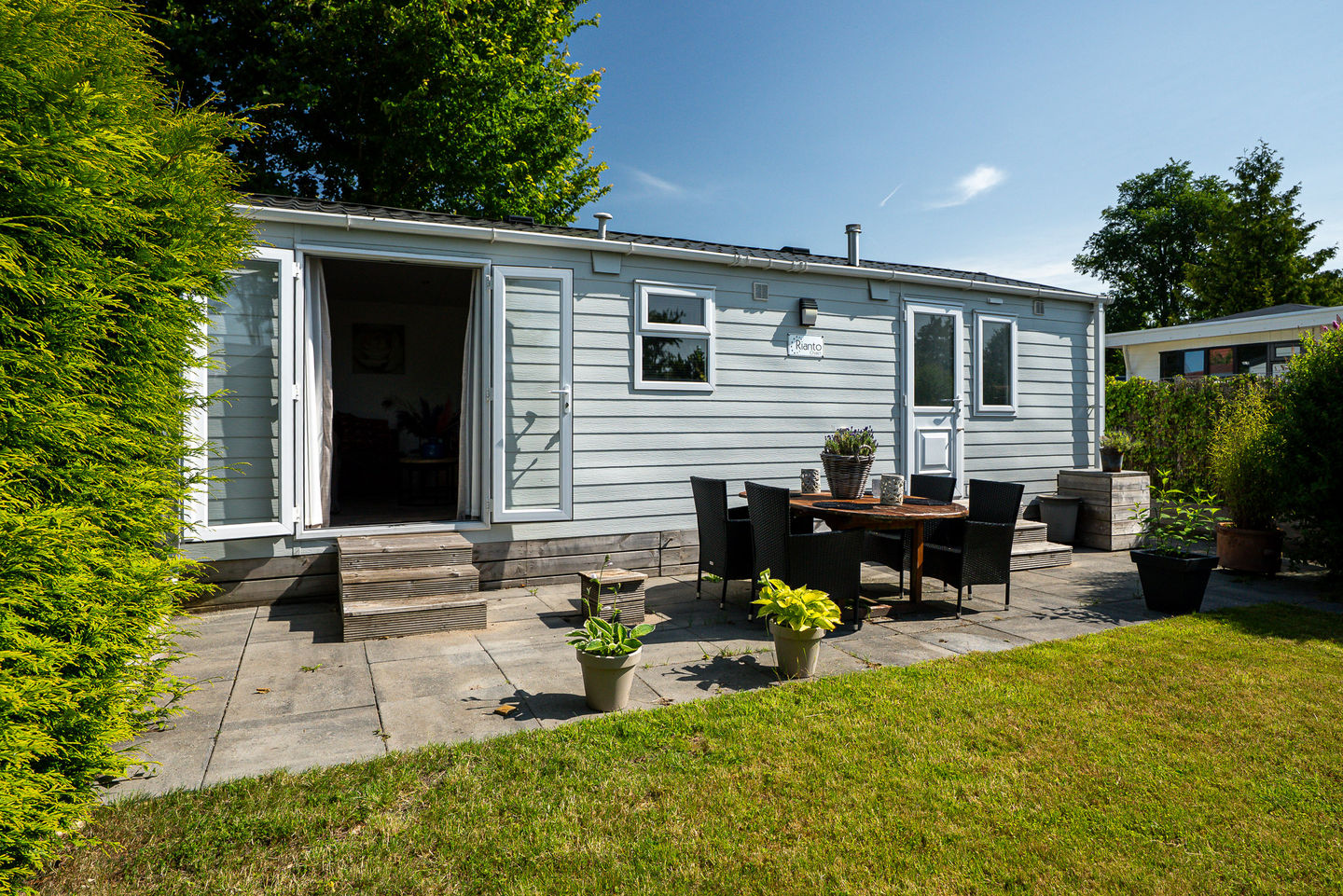 Het chalet is gelegen op het beschutte B-veld, wat is gelegen naast waterpark Yn 'e Lijte, aan de rand van Grou. Dankzij de groene ligging en de op het zuiden gerichte tuin geniet je hier van rust, privacy én volop zon. Een heerlijke plek voor wie wil onthaasten in een natuurlijke omgeving, met tegelijkertijd alle voorzieningen van het dorp op korte afstand.