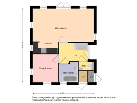 Indeling begane grond: ruime entree, toilet, badkamer met ligbad, royale 2-persoons slaapkamer, woonkamer met openslaande tuindeuren en open keuken; van buitenaf toegankelijke meterkast en CV ruimte. Verdieping: overloop, tweemaal een 2-persoons slaapkamer, badkamer met douche, 2e toilet en wastafel. Deze woningen zijn geheel op de kinderen afgestemd met onder meer in de badkamer op de begane grond een speciale kinderwastafel, een kindertoilet, een slaapkamer op de verdieping met twee sfeervolle ledikanten. Daarnaast zijn deze woningen voorzien van een was- en droogmachine (of een combinatie hiervan).