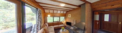 - De zithoek en open keuken hebben via de openslaande deuren direct toegang tot het terras en geven hierdoor een prachtig uitzicht op de bossen, Door de antraciet tegelvoer en de hoge plafonds ontstaat er een knusse ruimte waar u heerlijk tot rust kunt komen. De woonkamer is o.a. voorzien van een