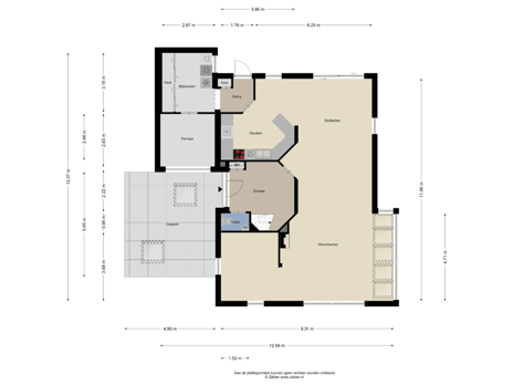 Vanuit de keuken bereikt u de gang naar de bijkeuken, die toegang geeft tot de garage. Aan de voorzijde van de woning bevindt zich tevens een carport voor extra parkeergelegenheid.