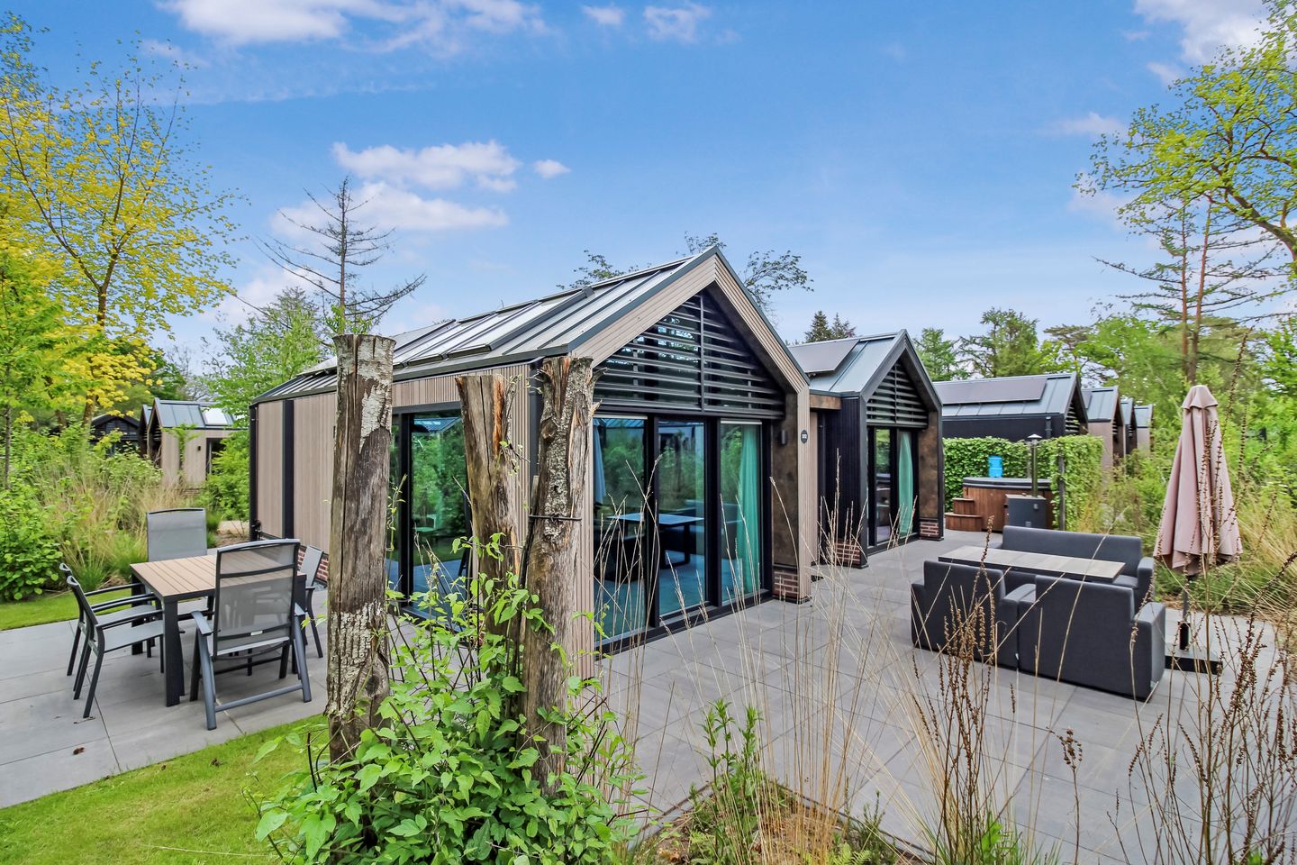 Op de exclusieve Résidence Lage Vuursche staat deze stijlvolle 4-persoons lodge, die is voorzien van zonnepanelen en een thuisbatterij en die dus volledig gasloos is. De duurzame lodge staat op een prachtige plek en is van alle gemakken en luxe voorzien - perfect voor eigen gebruik of als investering.