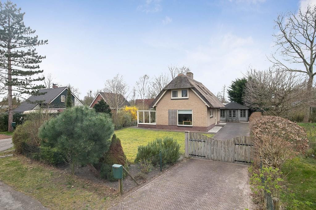 De grote tuin rondom is met zorg aangelegd en heeft de gehele dag zon. In het achterste gedeelte staat een tuinhuis/ berging.