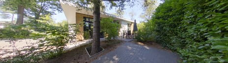 Exterieur: De recreatiewoning wordt omringd door een fraai aangelegde, groene tuin die volop privacy biedt. Dankzij de weelderige beplanting en de hoge haag rondom voelt het perceel heerlijk beschut en rustig aan. Een fijne plek om in alle seizoenen van het buitenleven te genieten. Grenzend aan de recreatiewoning bevindt zich een fijn terras, perfect geschikt voor een buitentafel met stoelen, waar je in alle rust kunt ontbijten, borrelen of dineren. Of je nu in de zon wilt zitten of juist de schaduw opzoekt, de tuin biedt altijd een prettige plek. Aan de voorzijde van de recreatiewoning is een eigen parkeerplaats aanwezig, zodat je altijd dichtbij kunt parkeren. Praktisch en comfortabel!