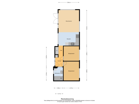 Indeling: U komt binnen in een nette hal met voldoende ruimte voor een garderobe. Vanuit deze hal bereikt u zowel de twee slaapkamers als de badkamer. Loopt u naar links dan komt u in de sfeervolle leefruimte. Een warme en uitnodigende plek om tot rust te komen.