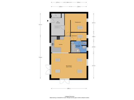 De badkamer is voorzien van een apart toilet, ligbad, douche en wastafel. De badkamer bereikt u via een ruimte die eveneens mogelijkheden biedt. Vraag hiernaar tijdens een bezichtiging.