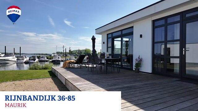 Te koop: Luxe recreatiechalet met fenomenaal uitzicht op de Nederrijn, gelegen op kavel 85 van Marinapark Bad Nederrijn Maurik.
