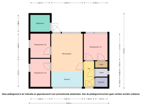 Slaapkamer (1), afmeting ca. 2.75 x 3.05 m.
