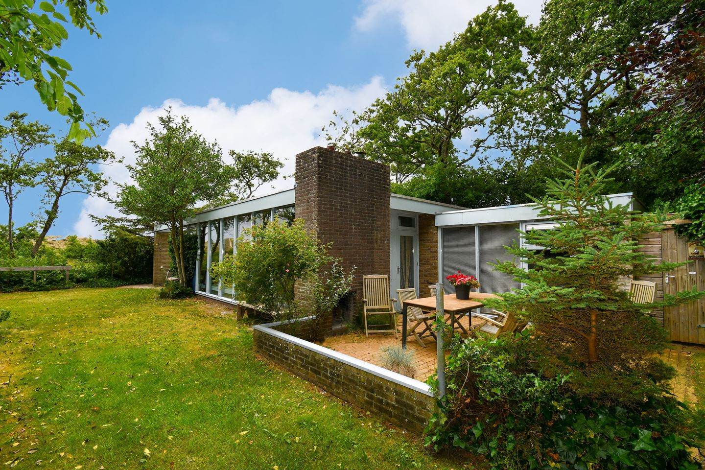 De woning heeft een ruime tuin rondom de woning, met vrij uitzicht richting de duinen en het ruiterpad.