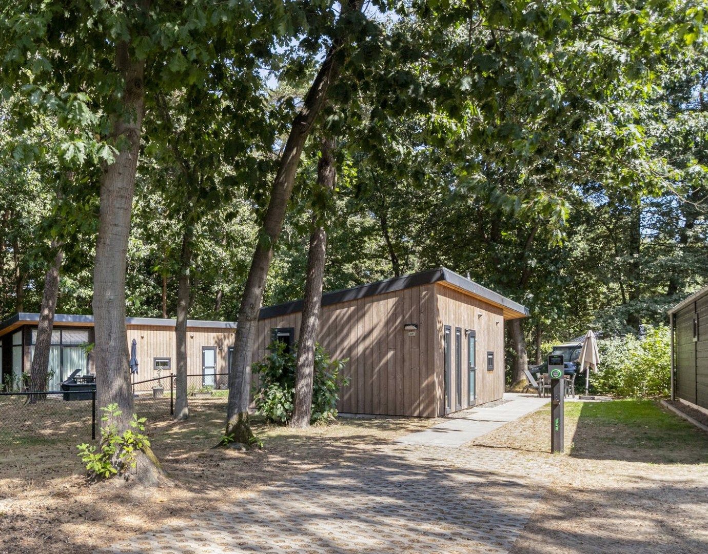 Deze 6-persoons vrijstaande woning, is prachtig gelegen in het bos op een kavel eigen grond van 331m². De woning is in 2020 duurzaam gebouwd met mooie materialen en geheel smaakvol ingericht. Er is een tuin rondom met royaal terras en terrasmeubilair.