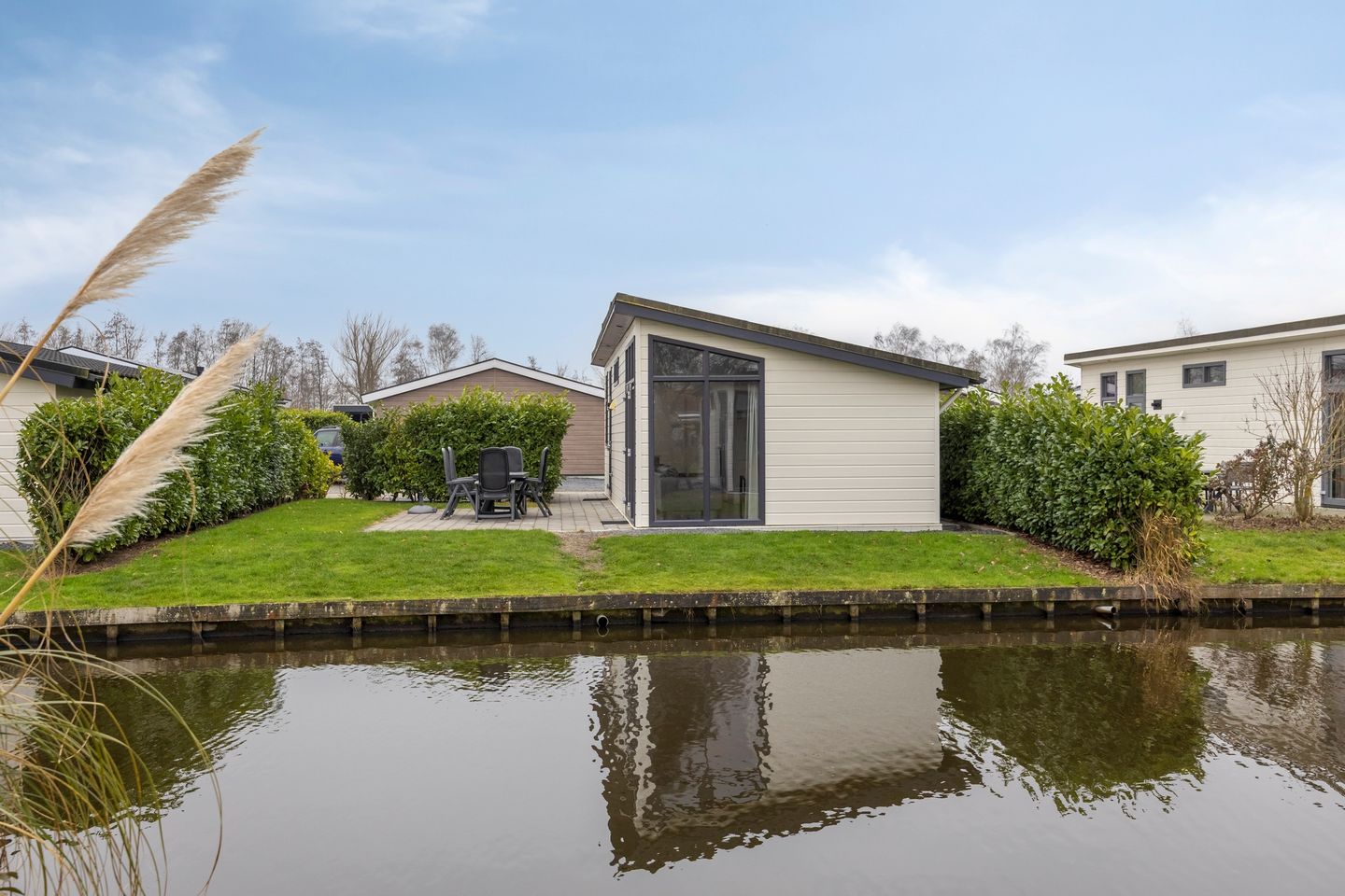 Rondom het chalet ligt een verzorgde tuin met meerdere hoekjes om te zitten of gewoon even te genieten van de rust en ruimte. De achtertuin grenst direct aan het water, perfect voor ontspannen avonden, vissen of genieten van een kop koffie met vrij uitzicht.