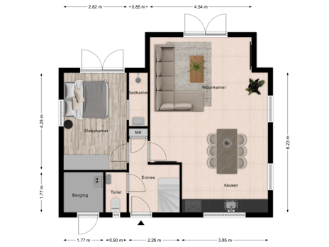 - Volledig geïsoleerd en voorzien van kunststof kozijnen