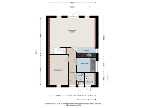 Hal/entree met toilet en fontein, slaapkamer, badkamer onder de dakkapel met douche, wastafel en wasmachineaansluiting. Praktische afsluitbare kast onder de trap voor eigenaren