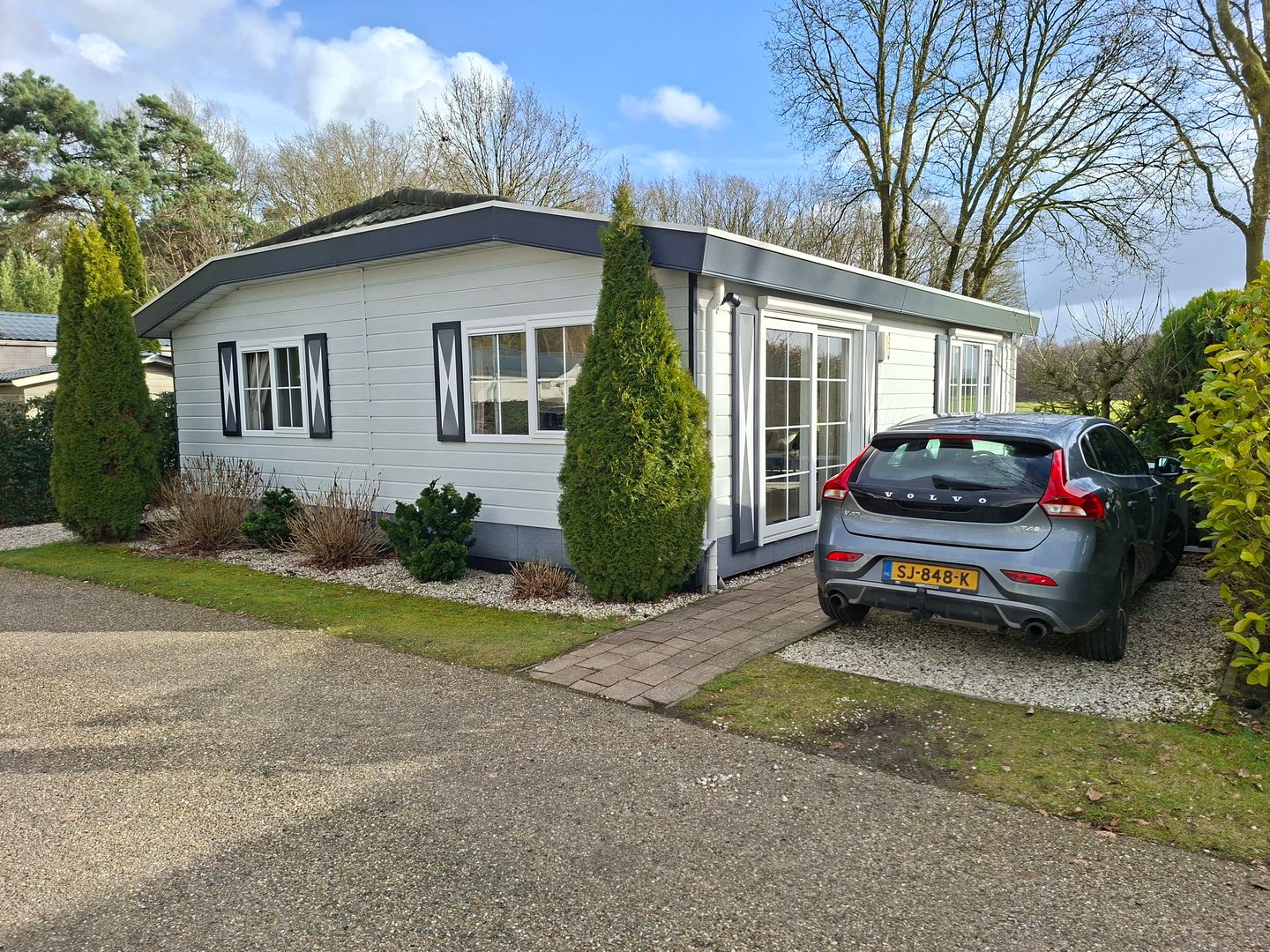 Bij de bouw in 2011 is met optimale isolatie rekening gehouden. Het onderhoudsarme chalet is comfortabel en goed uitgerust; naast een ruime woonkamer is er een moderne complete keuken, twee slaapkamers, een eigentijdse badkamer, wasruimte/binnen berging, een apart toilet naast de toilet op de badkamer en een ruimte waar de c.v. ketel en meterkast geplaatst zijn. Buiten beschikt het chalet over een heerlijk overdekt terras, een aparte berging, een achtertuin met vrij zicht over landerijen en een 2 eigen parkeerplaatsen voor de deur.