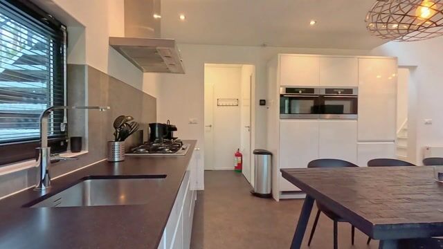 De moderne open keuken is compleet uitgevoerd en voorzien van een 5-pits gasfornuis, vaatwasser, koelkast, combi-oven en veel kastruimte. Het chalet beschikt over drie slaapkamers, geschikt voor in totaal zes personen. De ouderslaapkamer biedt ruimte aan een tweepersoonsbed. De tweede slaapkamer is ingericht met twee eenpersoonsbedden en beschikt over een praktische walk-in closet. De derde slaapkamer heeft twee aaneengeschoven bedden en een en suite badkamer met douche, wastafel en designradiator. Daarnaast is er een tweede badkamer met moderne douche, toilet, wastafelmeubel en designradiator, evenals een apart toilet.