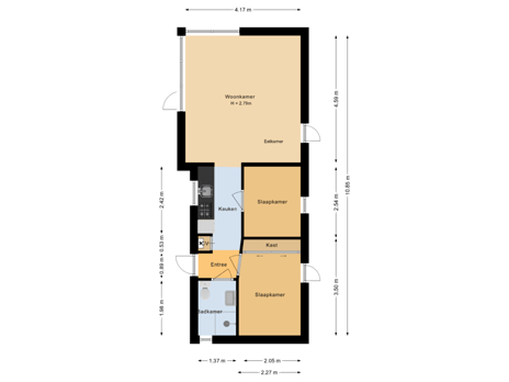 De keuken is stijlvol ontworpen in een strakke rechte opstelling. De witte afgewerkte fronten in combinatie met het donkere werkblad geven de keuken een moderne uitstraling. U vindt hier alle gemakken voor een aangename kookervaring, waaronder een gasfornuis, afzuigkap, combi-oven, koel-vriescombinatie en een vaatwasser.