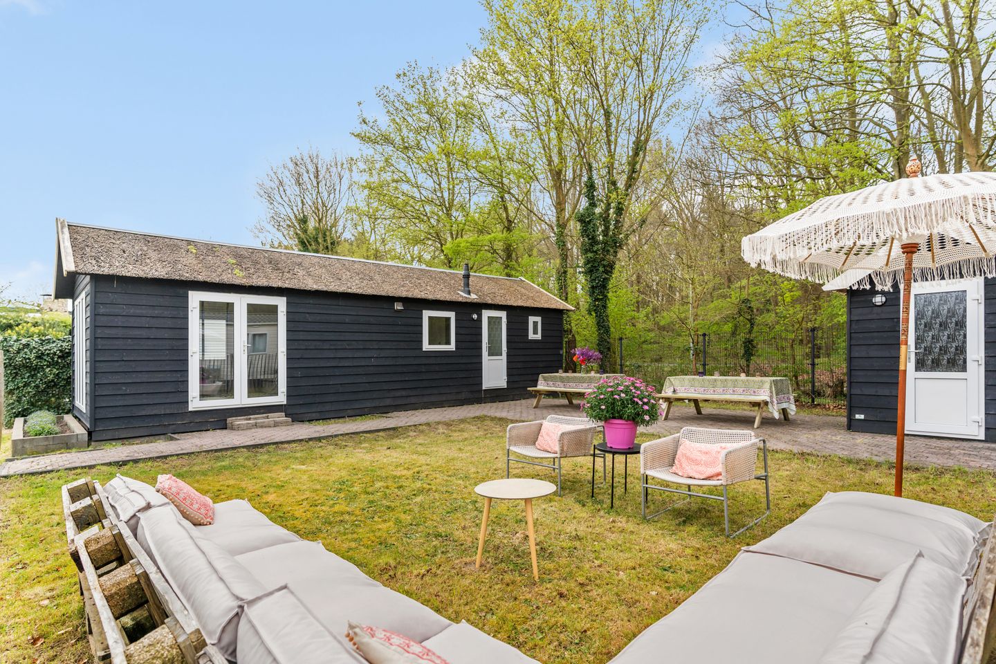 De tuin nodigt uit om te ontspannen, te genieten van de zon of gezellig buiten te eten. Daarnaast beschikt het chalet over een praktische blokhut, ideaal voor opslag en voorzien van een wasmachineaansluiting.