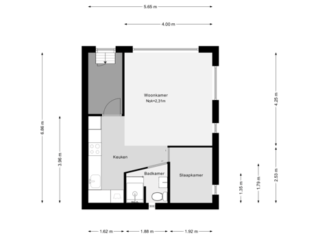 - Woonoppervlakte verblijfsruimte ca. 39 m2