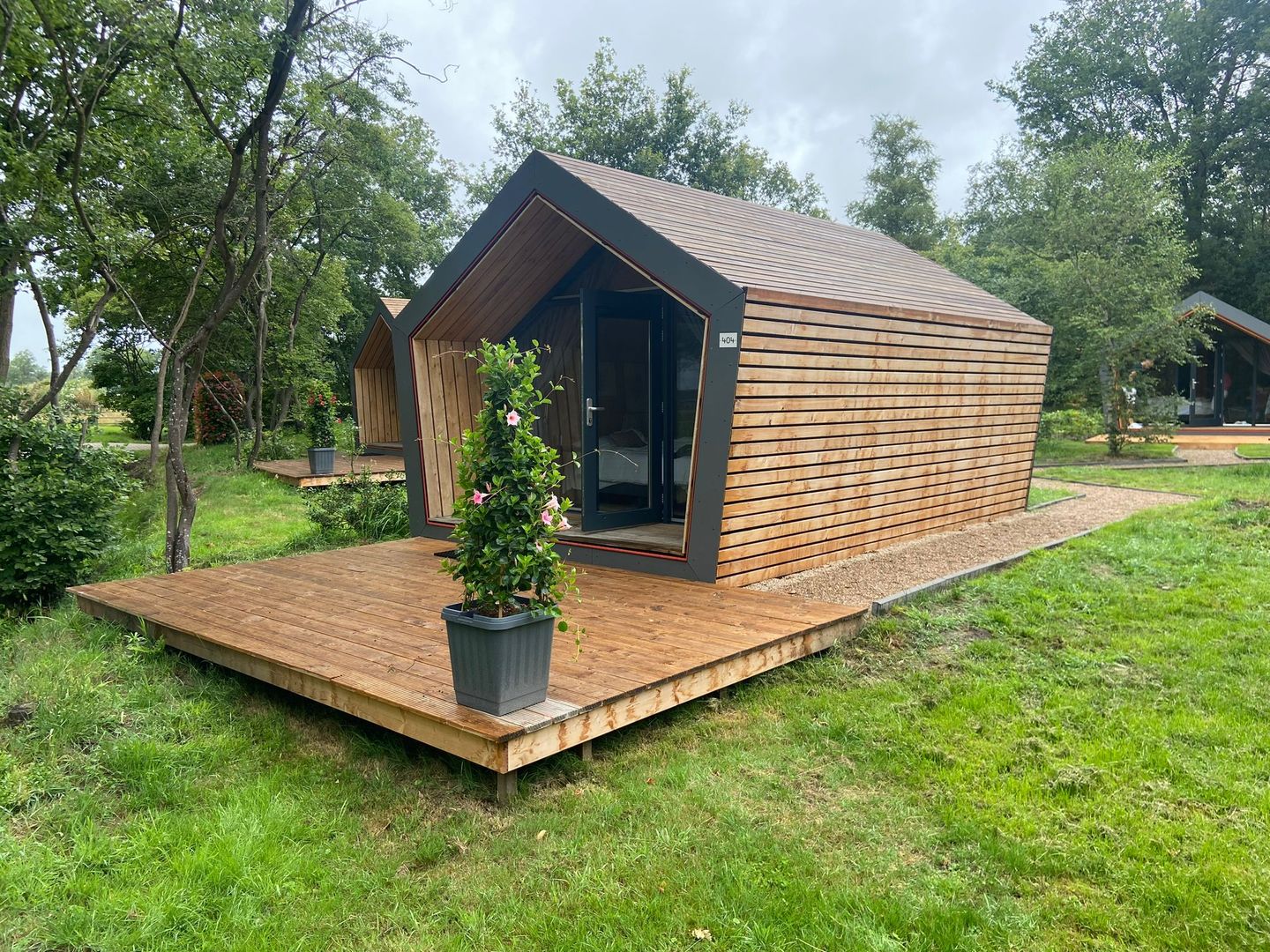 Op een van de meest geliefde plekken van EuroParcs Ruinen, aan Oude Benderseweg 11-404, bevindt zich dit knusse en moderne Solo Retreat chalet. Deze vakantiewoning, oorspronkelijk gebouwd als showmodel in 2021 en in 2022 opgeleverd, heeft een perceeloppervlakte van 141 m² en ligt op loopafstand van álle centrale voorzieningen van het park. Denk aan de receptie, het overdekte zwembad, een restaurant, winkel, speeltuin, kinderboerderij en zelfs een midgetgolfbaan. Toch is de ligging rustig, met uitzicht op een open speelveld en de kinderboerderij.