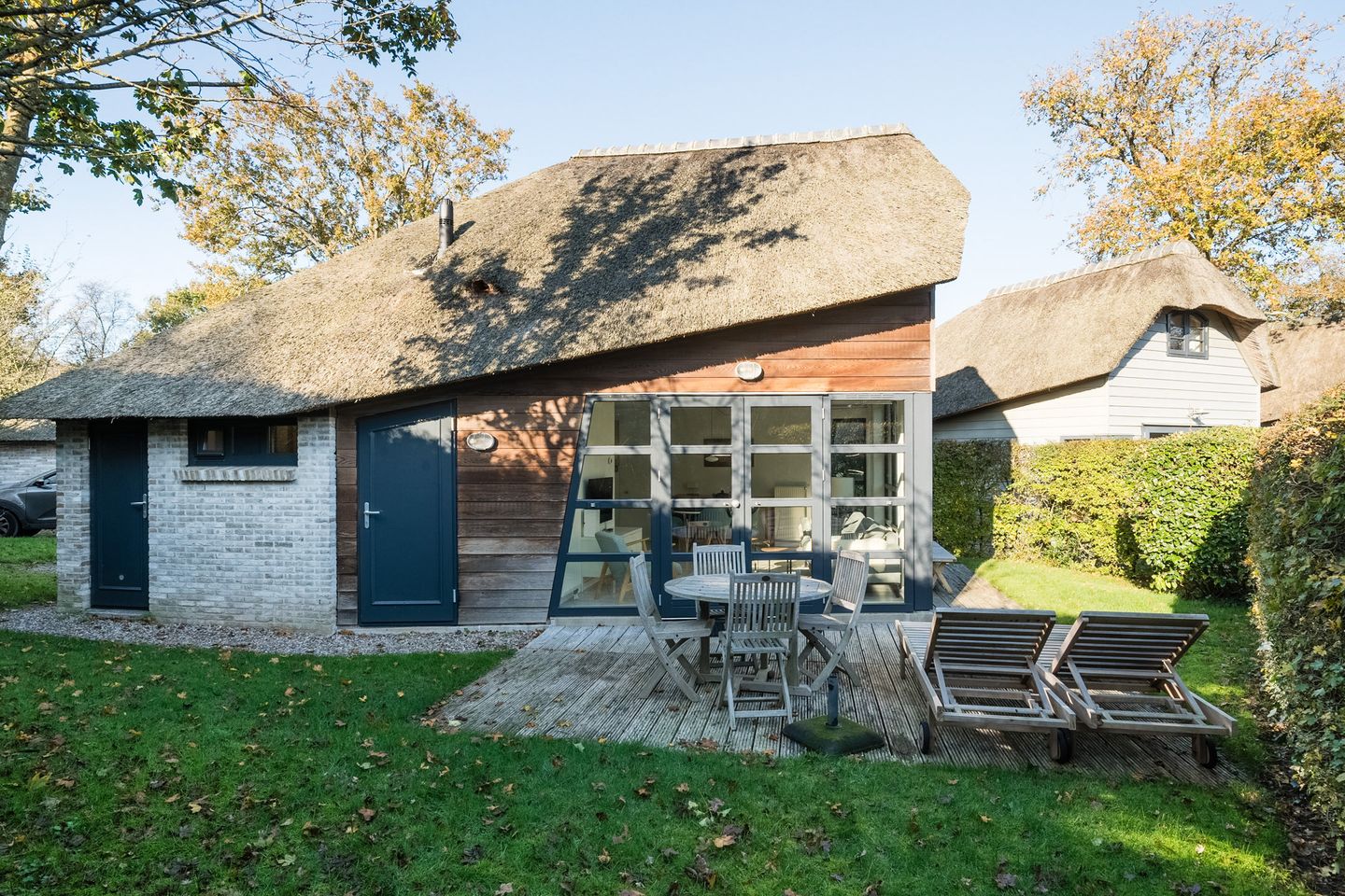 De woning heeft een fraai aangelegde, groene tuin rondom het huis. Er is een terras dat wordt omlijst door een grasveld en groene hagen. Hierdoor is de tuin heerlijk privé en afgeschermd. De groene omgeving versterkt het vakantiegevoel!