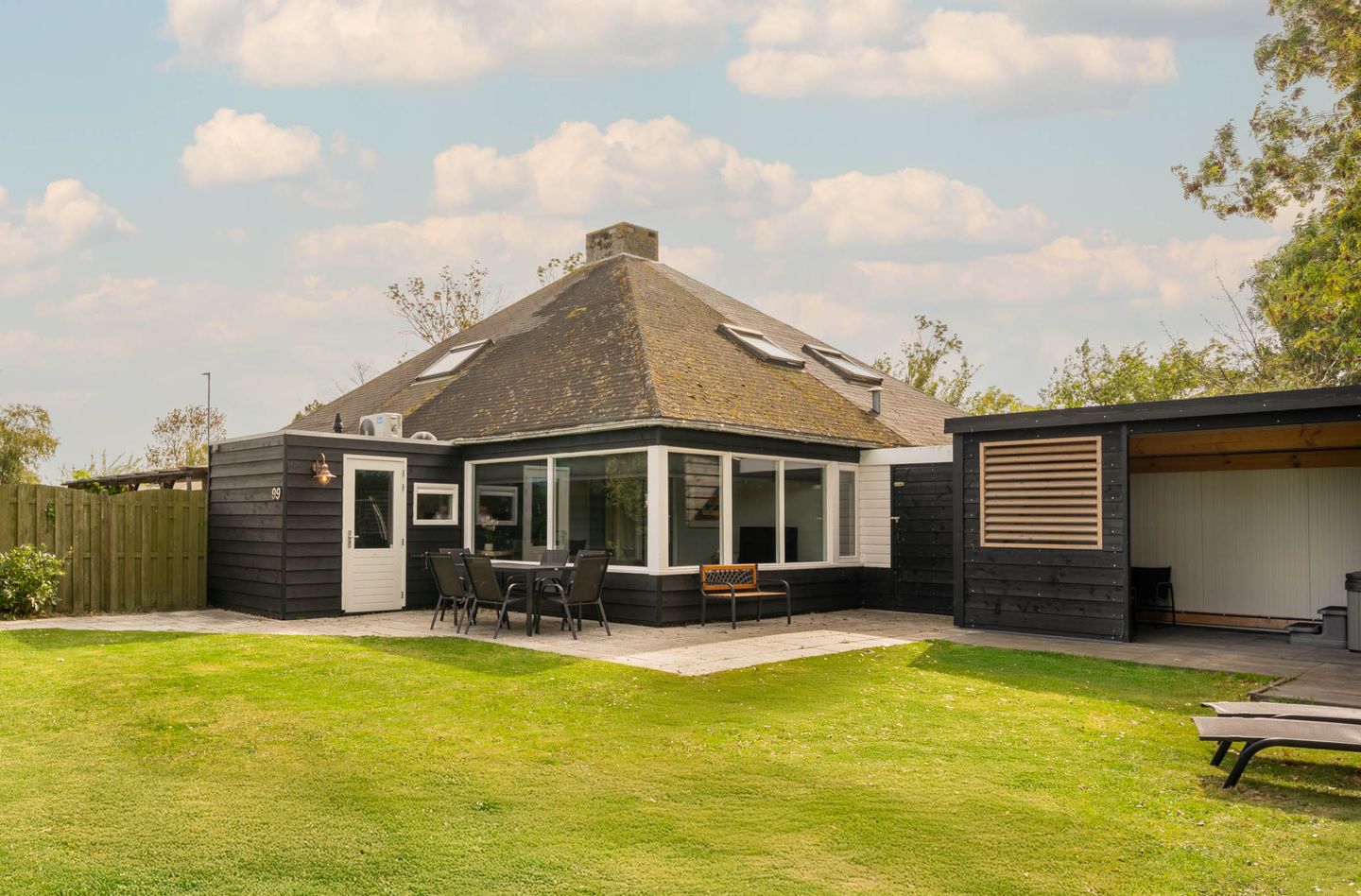 De tuin bij deze recreatiewoning is verrassend ruim en biedt volop privacy. Of je nu wilt zonnen, ontspannen met een goed boek of gezellig wilt dineren met vrienden of familie – hier kan het allemaal in alle rust en comfort.