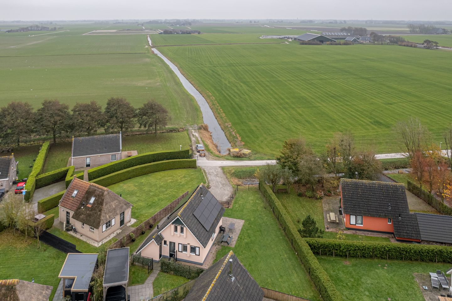 Rondom ligt een ruim gazon met plek voor meerdere gezellige zitjes. Vanuit de lichte living stap je via de openslaande deuren zo het terras op, waar het weidse uitzicht over het Friese landschap je direct laat ontspannen. Of je nu komt voor rust, ruimte of quality time: hier geniet je 365 dagen per jaar ongestoord van het echte Friese buitenleven.