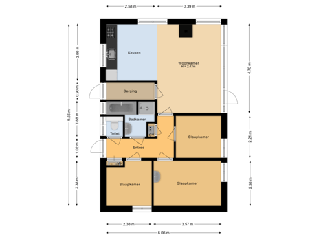 - 58 m²