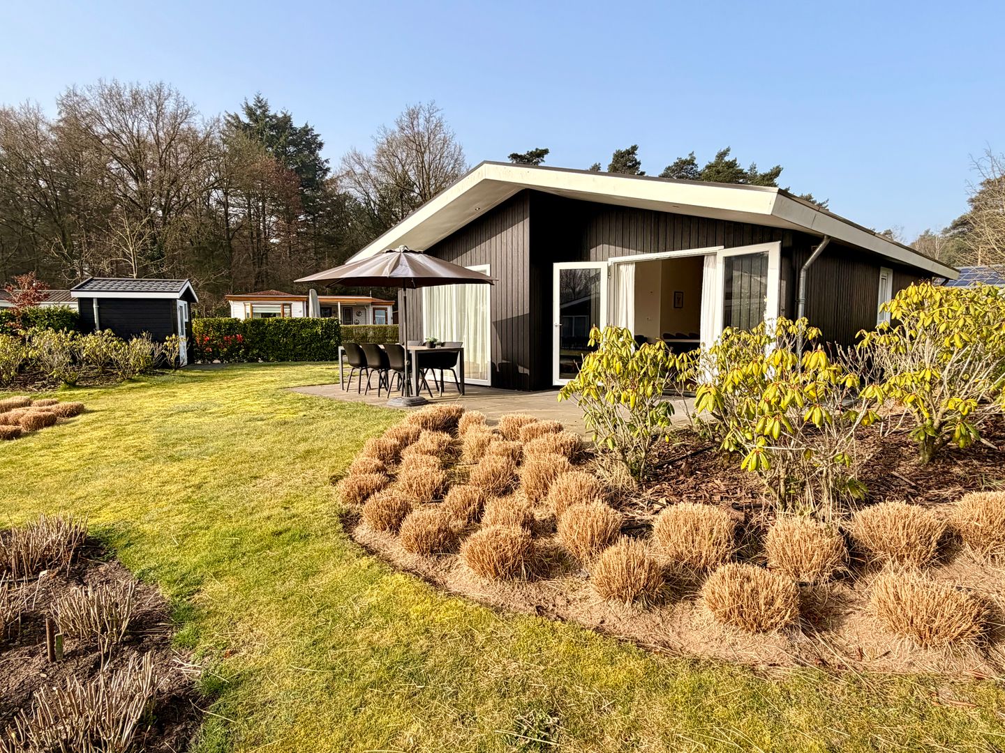 De bungalow beschikt over drie ruime slaapkamers, elk met voldoende lichtinval en comfort. De hoofdslaapkamer is voorzien van een praktische en stijlvolle kastenwand en voelt als een echte privéruimte. De overige kamers bieden volop mogelijkheden, bijvoorbeeld als logeerkamer, werkruimte of hobbykamer.