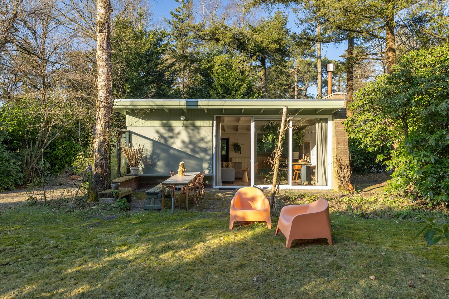 Bijzonder sfeervolle, vrijstaande recreatiebungalow gelegen op een unieke locatie midden in het bos van de Utrechtse Heuvelrug. Hier bent u elke dag op vakantie! De woning is goed onderhouden en de afgelopen jaren volledig gerenoveerd, hier kunt u zorgeloos genieten van een heerlijk verblijf in deze prachtige omgeving. In de woonkamer is een driedelige schuifpui geplaatst, dit zorgt ervoor dat u zelfs binnen van deze fantastische, bosrijke locatie kunt genieten en zo de tuin inloopt.