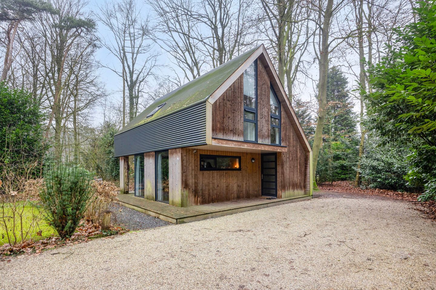 Gelegen op een solitaire plek in het bos, vlakbij natuurgebied de Gorsselse Heide. De woning heeft een bijzonder lijnenspel in haar vormgeving meegekregen (Bongers architecten) en ademt één en al sereniteit en verbondenheid met de omgeving.