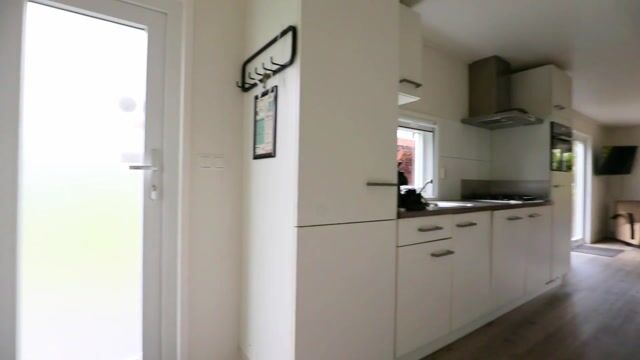 Het chalet biedt verrassend veel ruimte en comfort. De lichte woonkamer met grote raampartijen en openslaande deuren zorgt voor een prettige, open sfeer. De keuken is volledig uitgerust met moderne inbouwapparatuur, zodat u direct kunt koken en genieten.
