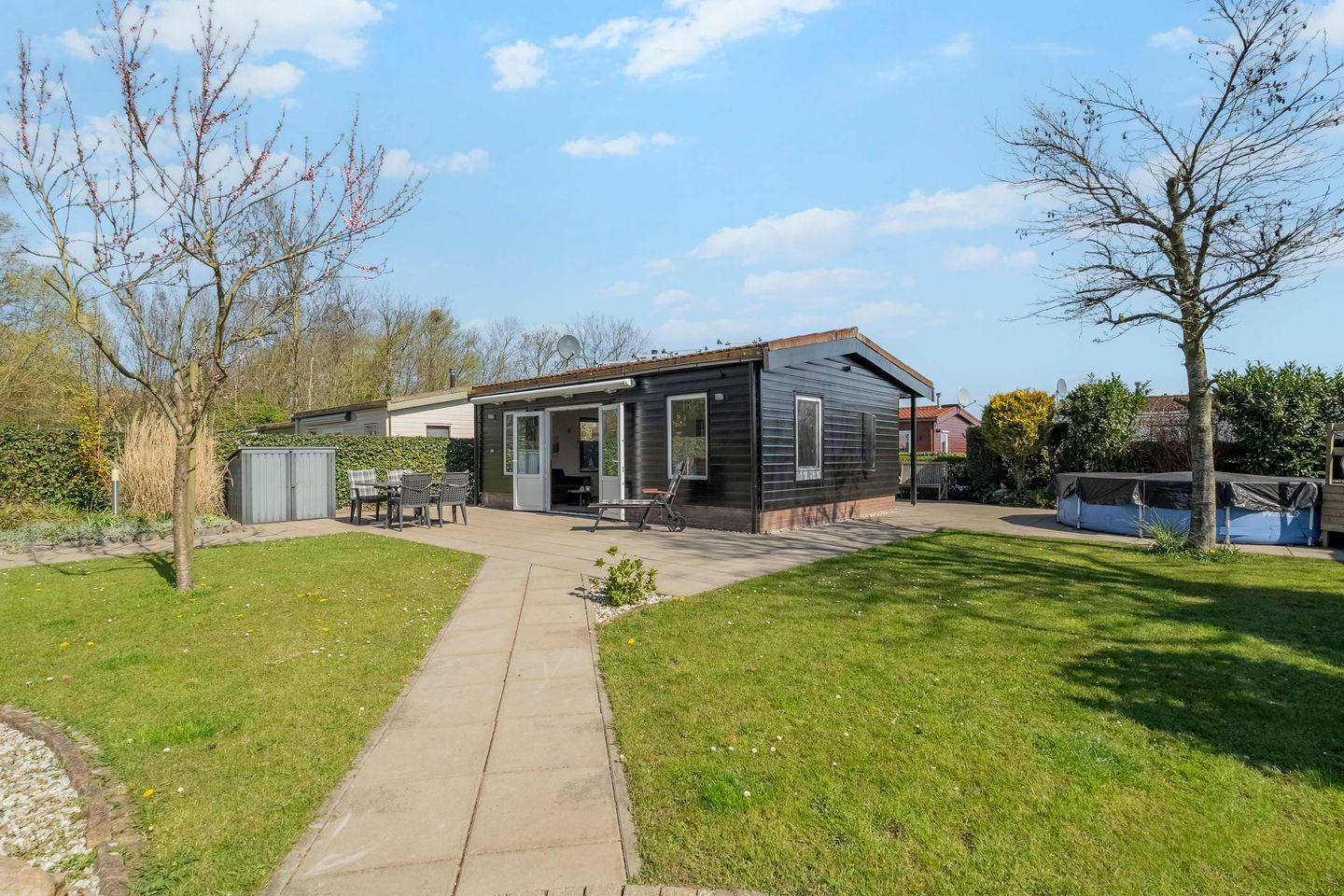 Einteilung: Beim Betreten fällt sofort das helle und gemütliche Wohnzimmer auf, mit einem schönen Blick auf das umliegende Grün. Die angrenzende Küche in praktischer L-Form ist komplett ausgestattet mit unter anderem einer Spülmaschine, einem Gasherd, einem Kühl-Gefrier-Kombination und viel Stauraum. Das Haus verfügt über zwei angenehme Schlafzimmer, jedes mit eigenem Blick auf den Garten und genügend Platz für ein Doppelbett. Das gepflegte Badezimmer ist mit einer geräumigen begehbaren Dusche, Toilette und Waschbecken ausgestattet. Der echte Hingucker ist zweifellos der Garten: eine grüne Oase mit mehreren Sitzgelegenheiten, darunter zwei gepflasterte Terrassen und ein stimmungsvoller Steg. Hier genießen Sie in aller Ruhe die Sonne und den freien Blick auf die Rückseite. Darüber hinaus gibt es einen praktischen Schuppen, perfekt zur Aufbewahrung von Fahrrädern oder Gartengeräten. Kommen Sie schnell und besichtigen Sie dieses Paradies?