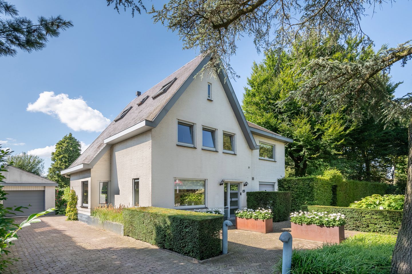 De extra grote garage (ruimte voor twee auto's) is vanaf de mooie en lange oprit toegankelijk via een elektrisch bedienbare sectionaldeur. De oprit voor deze garage biedt voldoende ruimte voor het parkeren van meerdere auto's.