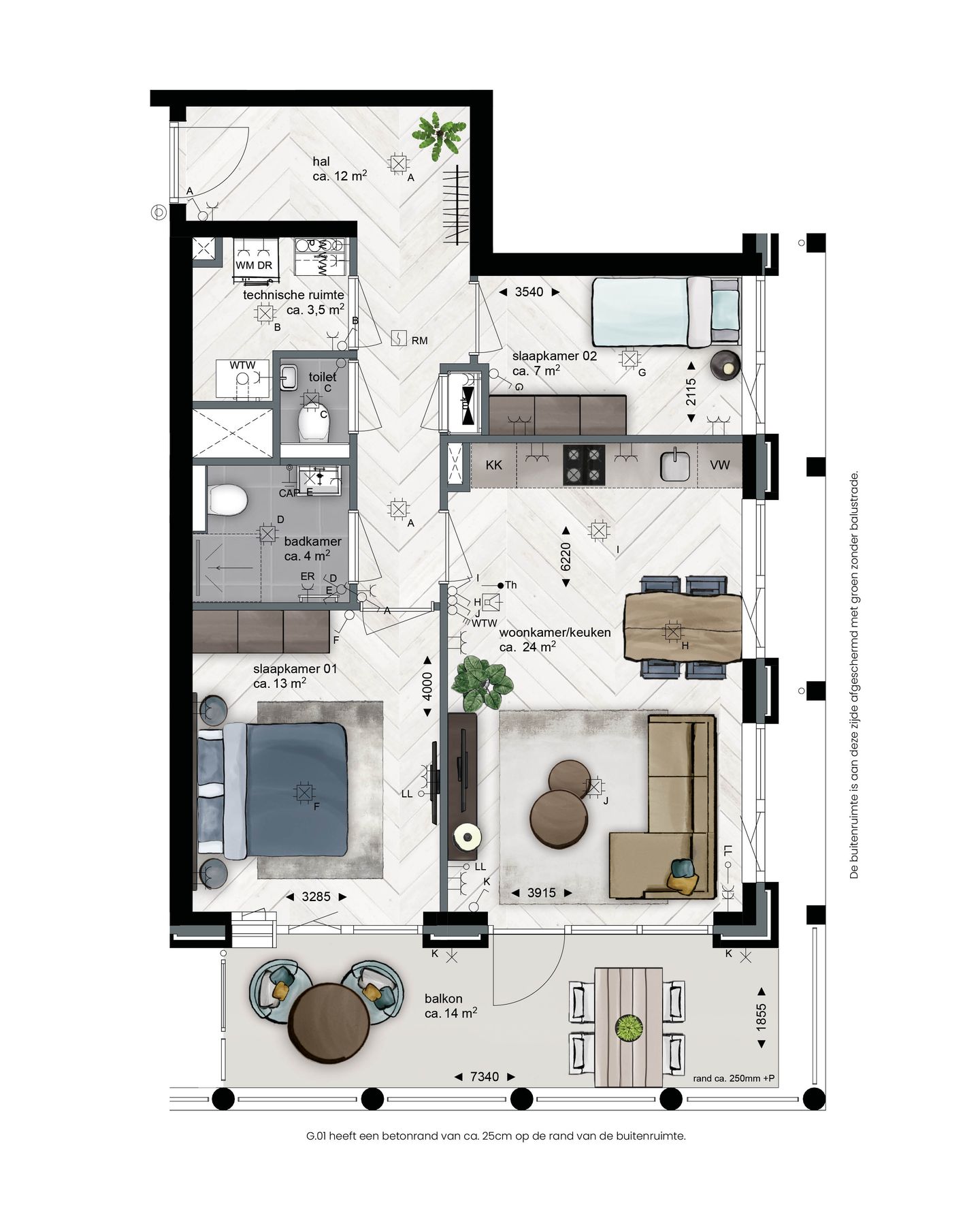 • Riant balkon, deels voorzien van balustraden op het zuiden